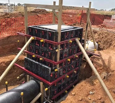 - Das System ist vielseitig und unterstützt effiziente Bauabläufe bei Mauern, Fundamenten und Pfeilern.