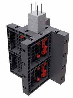Das System besteht aus ABS-Elementen und ist für das Formen von Stahlbetonsäulen konzipiert, auch bei wechselnden Querschnitten.
