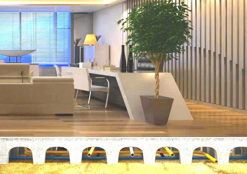 Das System schafft eine durchgehende Hohlkammer unter der Bodenplatte. Diese Hohlkammer fördert eine gute Luftzirkulation und schützt das Fundament vor aufsteigender Feuchtigkeit.