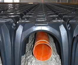Das System besteht aus einer Schalung aus strukturiertem, recyceltem Polypropylen, das speziell für die Lastenverteilung ausgelegt ist. Die Elemente werden auf einer Magerbeton-Unterlage installiert und erreichen dadurch eine stabile Basis.