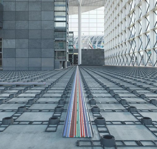 Matrix, modulare Schalung und Betondoppelböden für MEP-Systeme aus recyceltem Polypropylen mit hoher Tragfähigkeit und vielfältigen Oberflächen in Bahnhöfen, U-Bahnstationen, Einkaufszentren und mehr